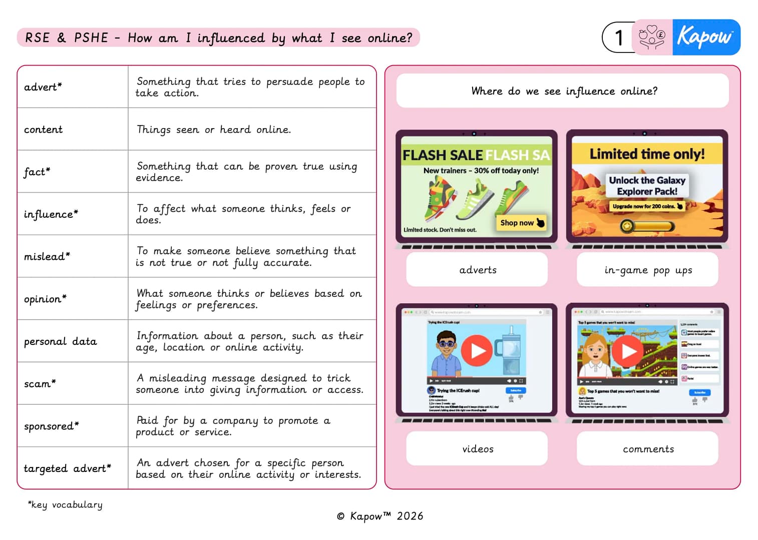 Lesson 1: How do adverts try to influence us online?