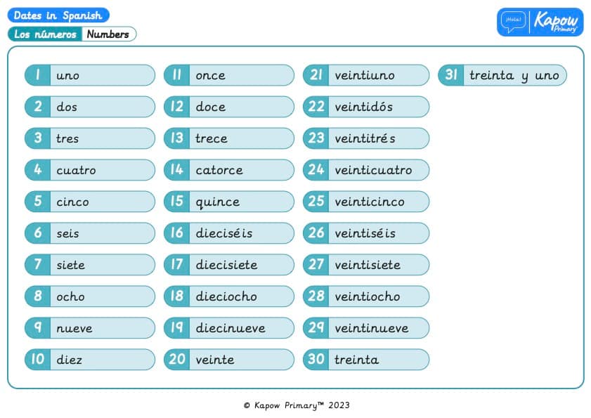 Mastering numbers to 31 and months of the year, saying the date and finding out about some Mexican birthday traditions.